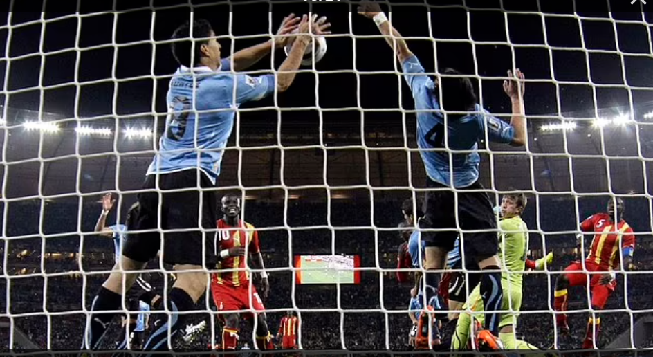 Kulanka 10aad Ghana v Uruguay; waxaa xiiso gaar ah u yeelaya ciyaartii 2010kii dhexmartay ee koobkii adduunka ee lagu qabtay koofur Africa, xilligaas oo afar dhamaadka ay u gudubtay Uruguay markii Suarez uu gacanta gool ku dhaliyay Asamoah Gyan, uu gool kullaad ka qasaariyay xulkiisa Ghana.